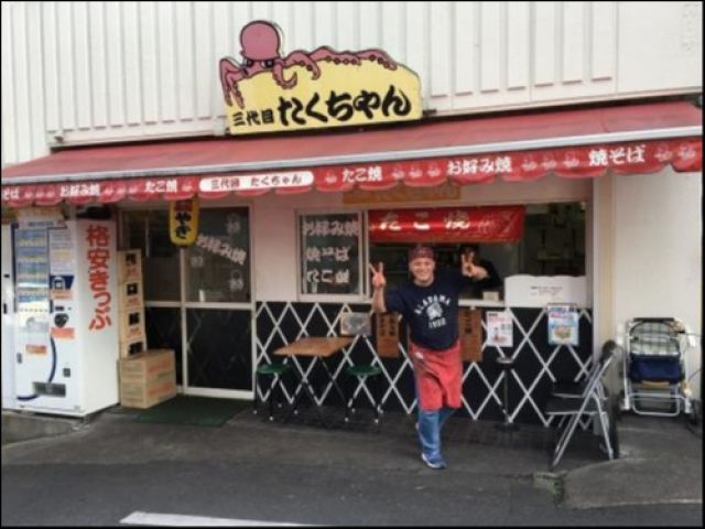 創業から半世紀、親子3代にわたって焼き続ける、 タコ焼きは鶏ガラダシを加えたコクのある生地が自慢です。 明るい外国人店主がお待ちしております。